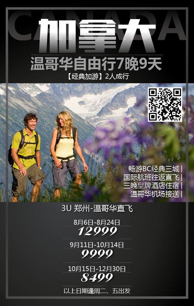 ▶ 中国-温哥华往返9天直飞航班,赠送机场接送机服务